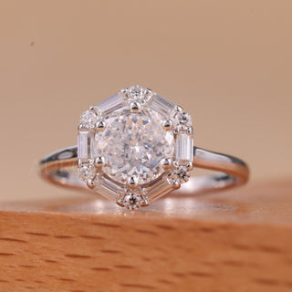 1.50CT Portuguese Round Cut Unique Halo Setting Moissanite Engagement Ring