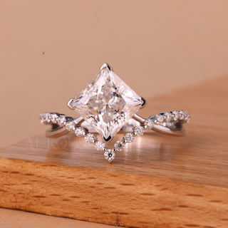 1.0CT Princess Cut Diamond Unqiue Curved Moissanite Engagement Ring
