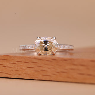 1.0CT East-West Oval Cut Diamond Pave Setting Moissanite Engagement Ring