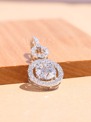 2.0CT Round Brilliant Cut Halo Moissanite Diamond Pendant Necklace For Women