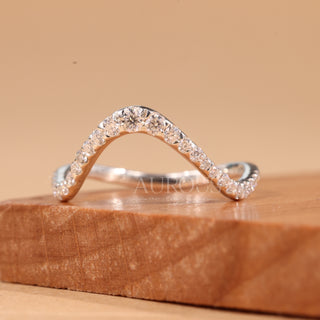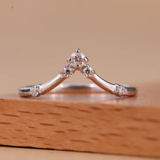 Round Cut Diamond Chevron Moissanite Wedding Band