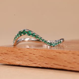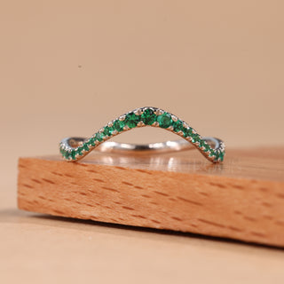 Round Cut Green Gemstone Curved Moissanite Wedding Band