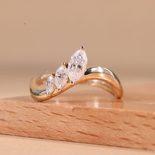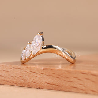 Marquise Cut Three Stone Curved Moissanite Wedding Band