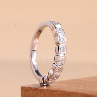 Asscher Cut Bezel Setting Half Eternity Moissanite Wedding Band
