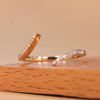 14K Solid Yellow Gold Unique Curved Wedding Band