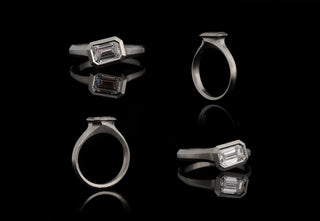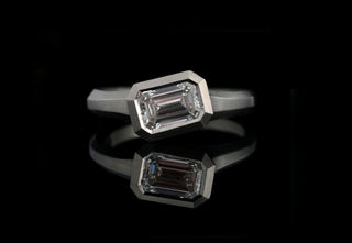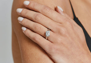 1.0CT Emerald Cut Unique Matte Finish Bezel Set Engagement Ring