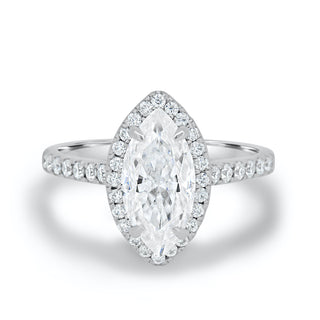 1.60CT Marquise Cut Halo Moissanite Engagement Ring in 14K White Gold